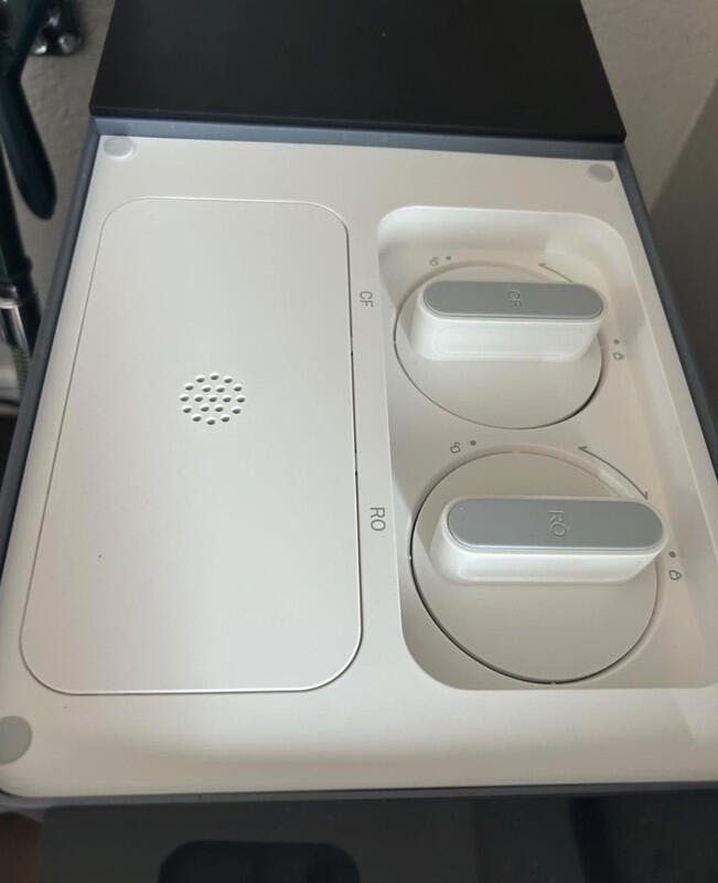 The OLED screen shows filter life clearly.